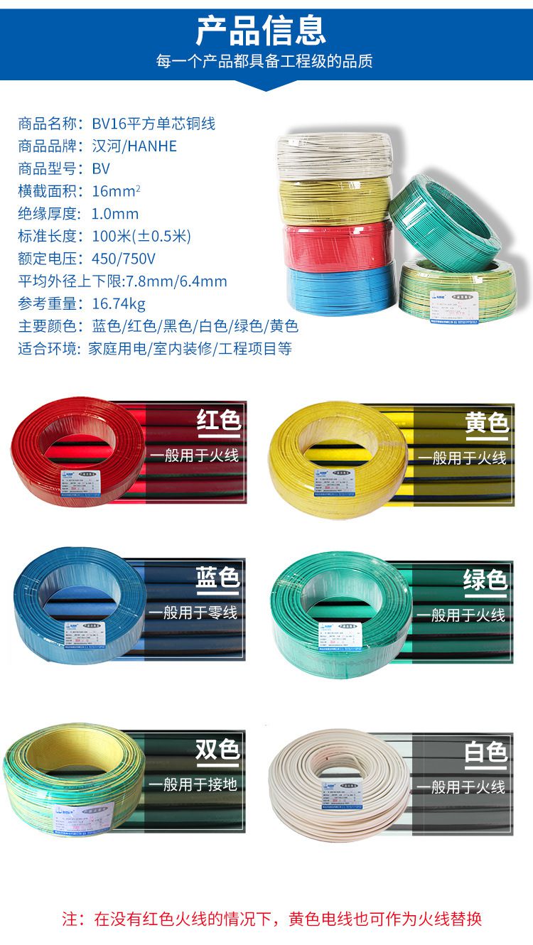 汉河电缆 BV16 平方国标铜芯家装 单芯铜线 硬线 进户总线 2020-08-10 本文被阅读 次