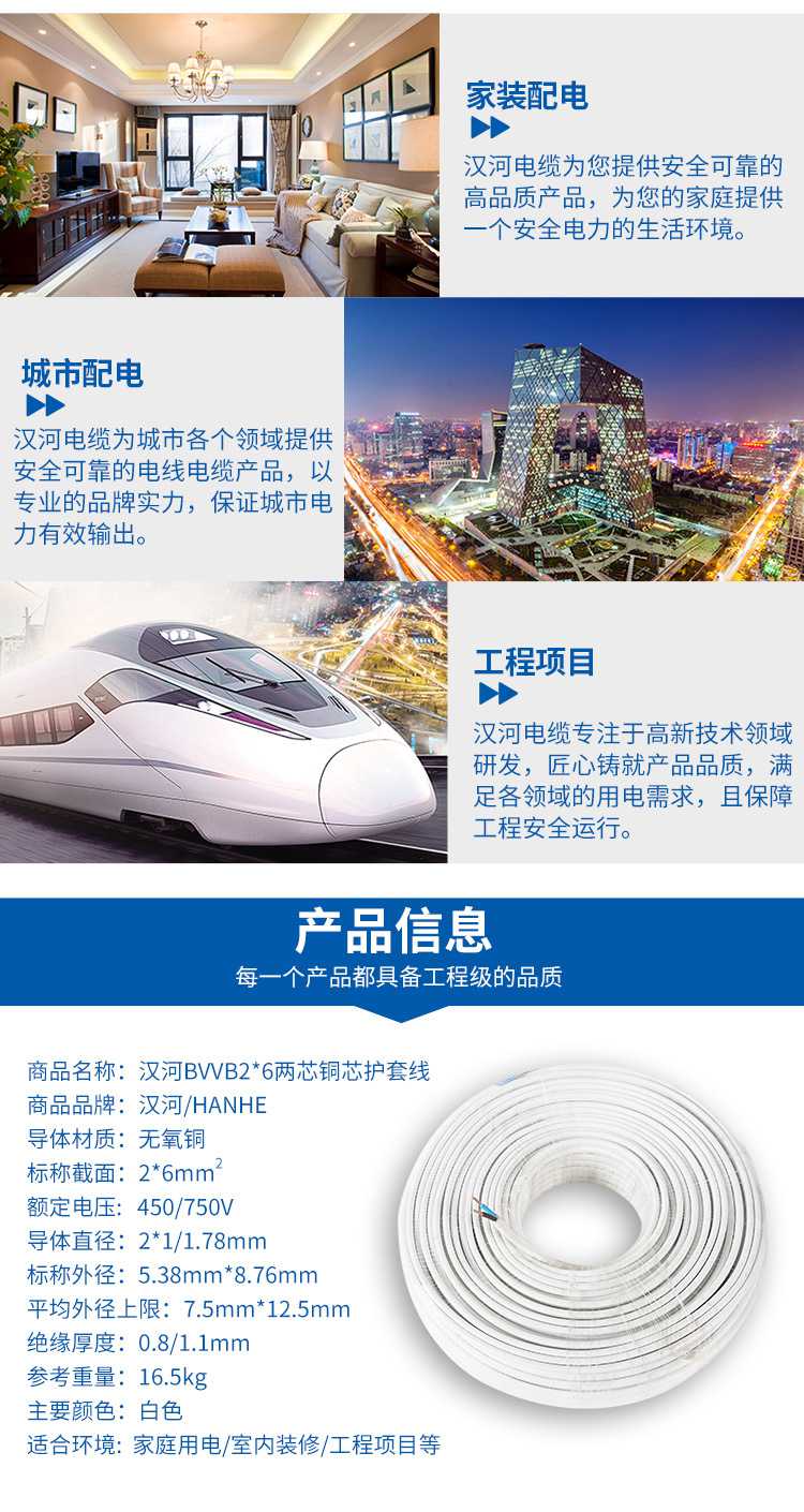 汉河电线 BVVB 26mm²国标2芯硬护套线铜芯家装电线家用明线 2020-08-10 本文被阅读 次