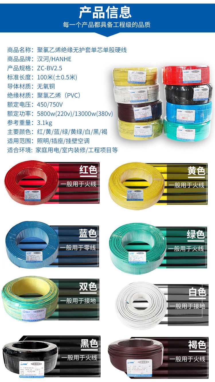 汉河电线电缆ZC-BV2.5平方 铜芯国标家装电线 单芯单股硬线足米 2020-08-10 本文被阅读 次