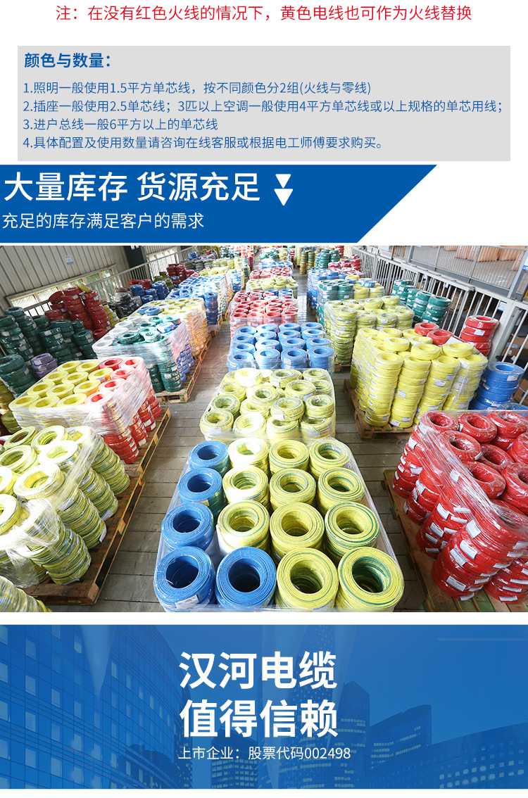 汉河电线电缆ZC-BV2.5平方 铜芯国标家装电线 单芯单股硬线足米